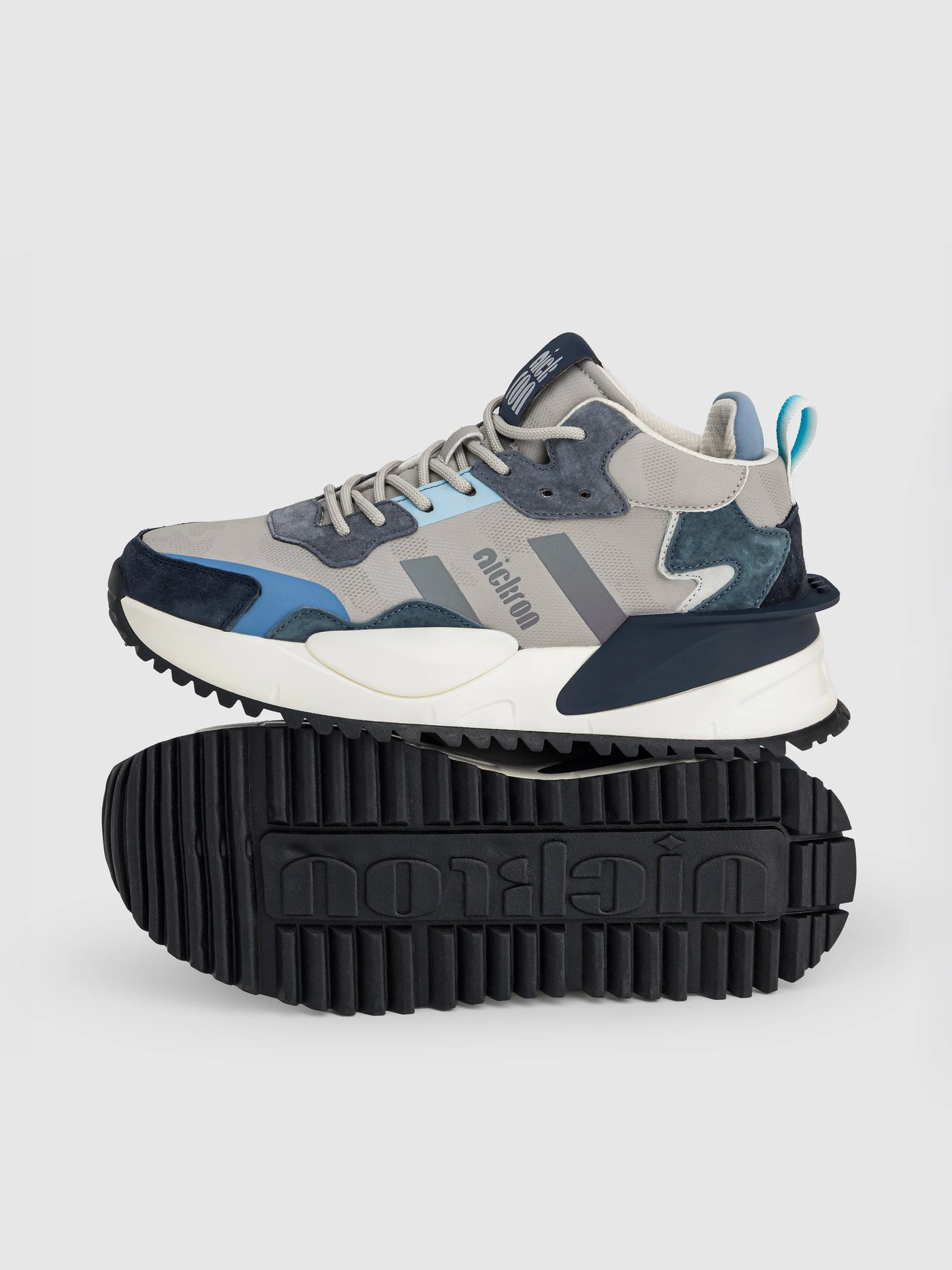 Nickron Sentinel is a mid-top urban sneaker built for everyday streetwear. Designed with a structured upper, padded ankle support, and a chunky outsole, it delivers a bold yet balanced silhouette that holds up from day to night. The layered panel construction adds durability and depth, while the cushioned sole ensures all-day wearability without compromising style. Sentinel blends control, comfort, and city-ready attitude.